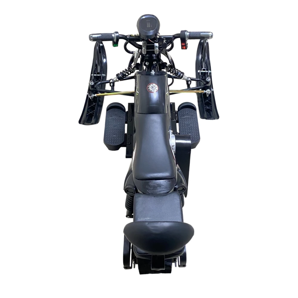 Снегокат оборудован эффективной тормозной системой и амортизаторами, которые обеспечивают безопасность при езде. Освещение яркое и заметное, что повышает видимость в сумерках и вечером. Электроника оснащена системами защиты аккумулятора от перегрева и короткого замыкания.