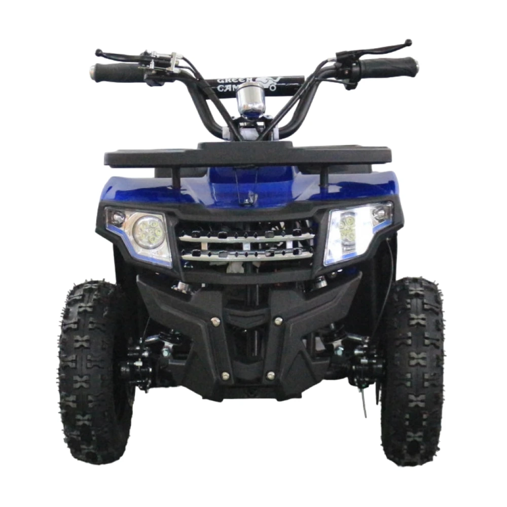 электрический квадроцикл GreenCamel Гоби K24, снаряженный мощным щеточным мотором на 800 Вт и аккумуляторной батареей Chilwee, поставляется с комплектом диск-тормозов и является одной из самых эффектных моделей в сегменте малых квадроциклов.