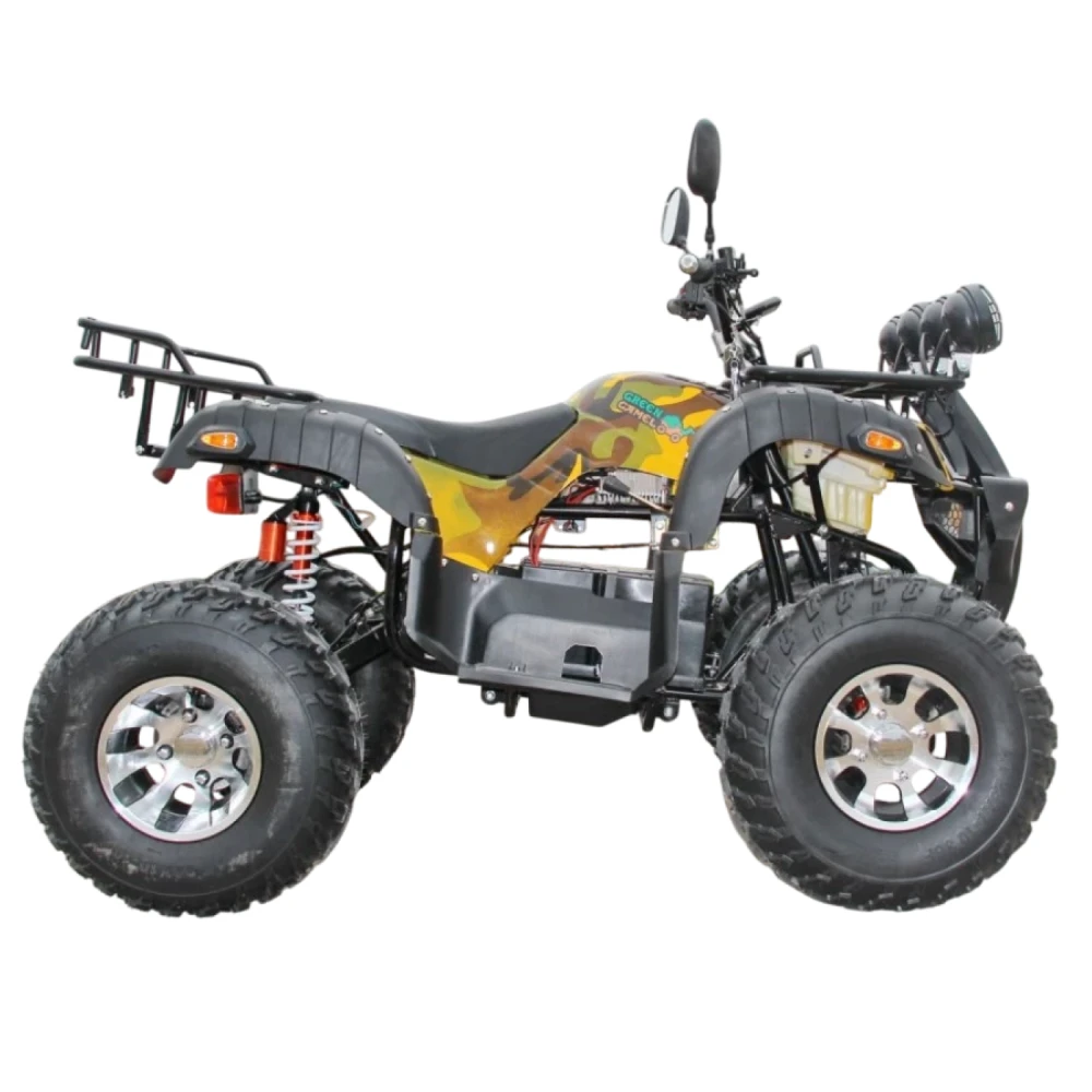 На квадроцикл GreenCamel Caxapa A4000 устанавливается сигнализация для лучшей безопасности. LED спидометр, с которым ваш ребенок сможет контролировать скорость на грунтовых дорогах и не преувеличить с ручкой подачи газа. Багажник спереди и сзади, на который можно положить вещи, трос, лебедки для большей уверенности в лесных тропах. Квадроцикл оборудован фаркопом.