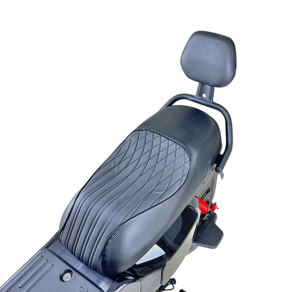 Электроскутер GT U2 PRO в черном исполнении — это сочетание мощности и элегантности. Двигатель 1500W и максимальная скорость 70 км/ч позволяют уверенно передвигаться по дороге. С запасом хода до 70 км и аккумулятором 30Ah, вы можете наслаждаться длительными поездками без подзарядки. Скутер поддерживает нагрузку до 160 кг, что позволяет взять с собой пассажира, для которого предусмотрены отдельные подножки. Дисковая гидравлическая тормозная система обеспечивает надежное торможение, а подвеска спереди и сзади сглаживает неровности дороги. Большая фара освещает путь в темное время суток, а современный дизайн подчеркнет ваш стиль.