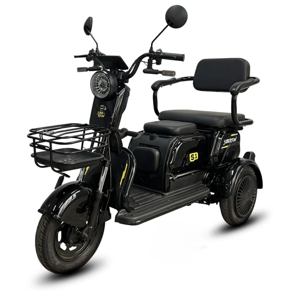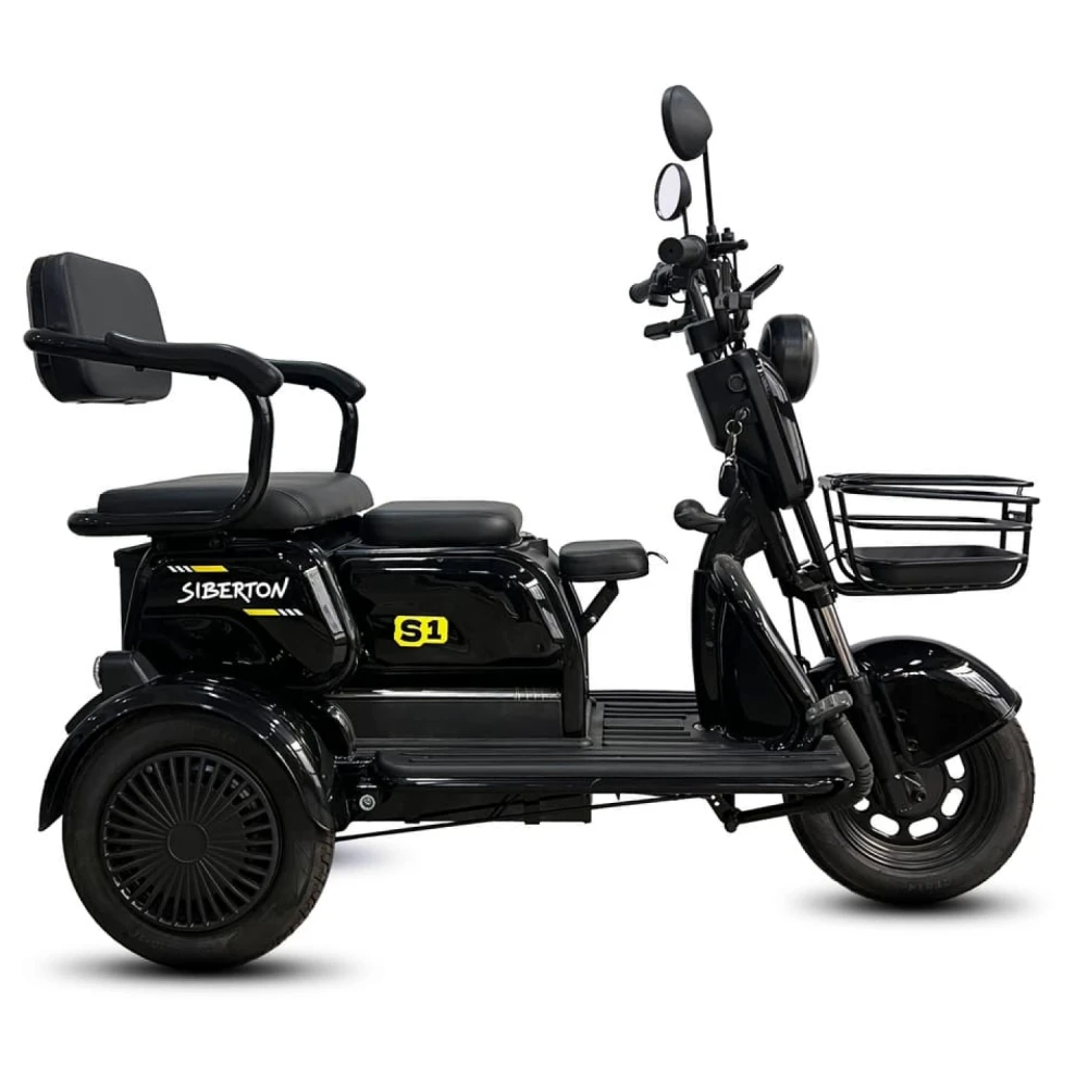 Электротрицикл Siberton S1 — компактный и манёвренный вариант для городских поездок и отдыха с мотором 2000 Вт, съёмным аккумулятором 60V 20–21 Ah и пробегом до 50 км. Эта модель сочетает устойчивость трёх колёс с лёгкостью управления, идеальна для новичков и курьеров.