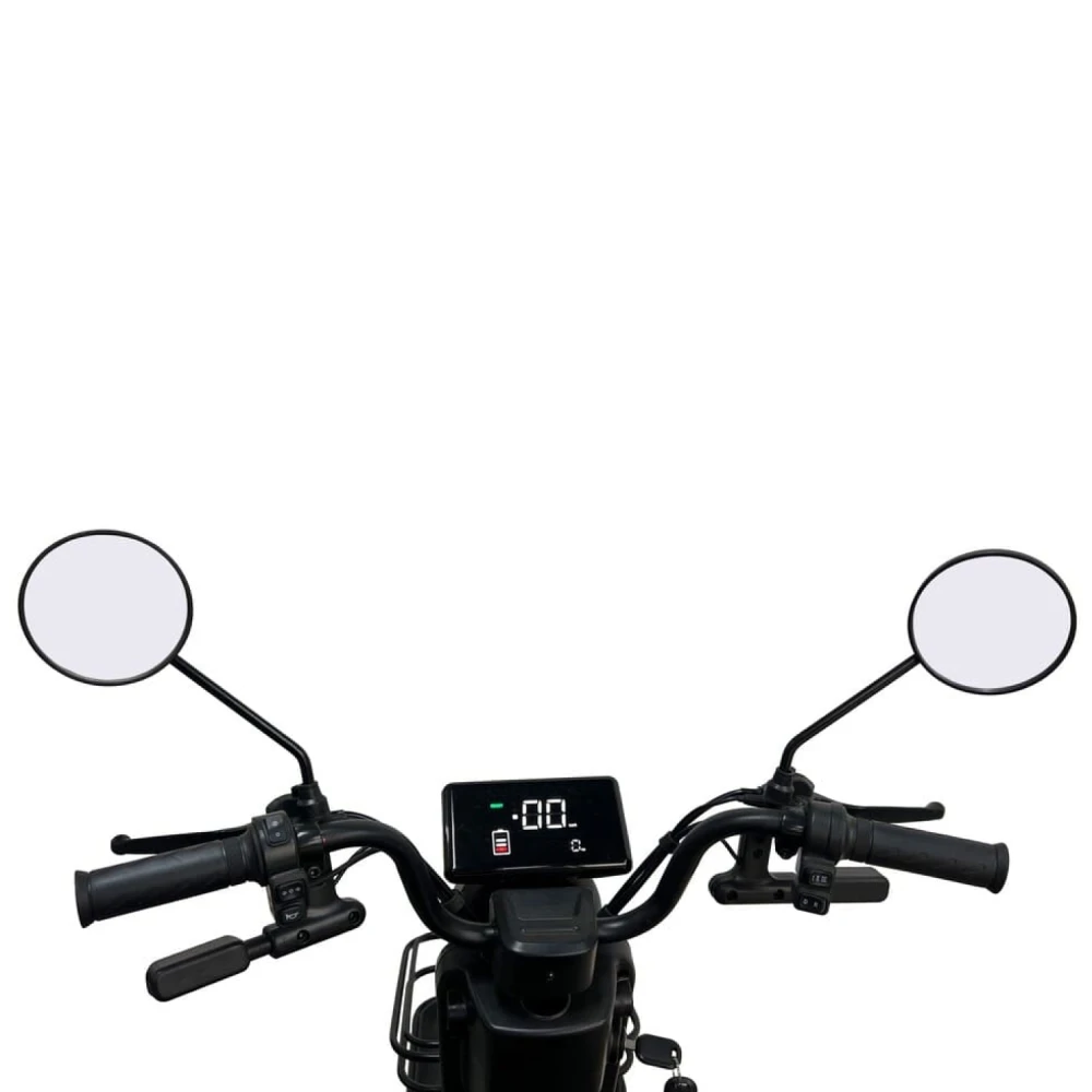 Мотор 2000 Вт (редукторный) даёт уверенный старт с пассажиром/грузом до 200–260 кг, на подъёмах работает стабильно благодаря дифференциалу; на неровностях — масляная подвеска гасит вибрации. АКБ 60V 20 Ah (Li-ion/LiFePO4 с BMS) заряжается 7 ч, реальный пробег 50 км (город, 75 кг) или 30 км под нагрузкой — энергоэффективность выше бензоаналогов на 40%. Режимов нет, скорость 35 км/ч фиксирована; без быстрой зарядки, но съёмный АКБ позволяет менять на запасной.