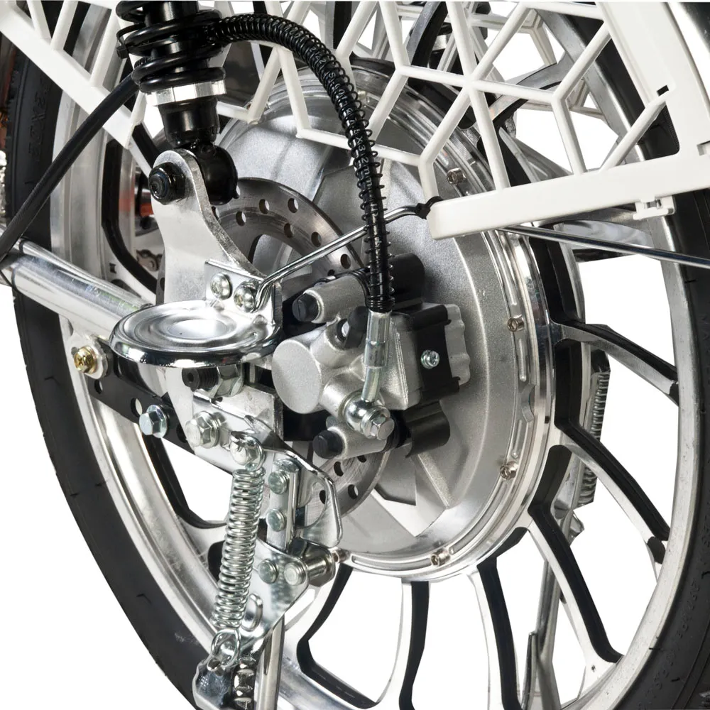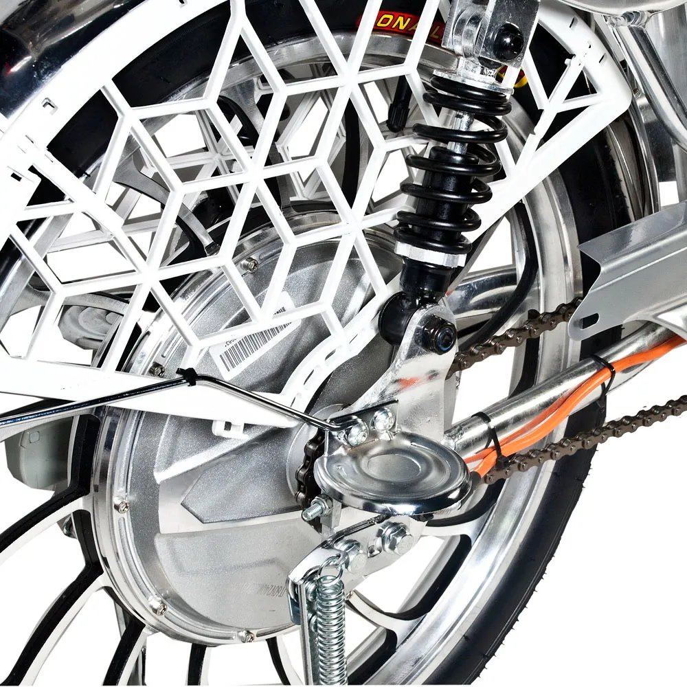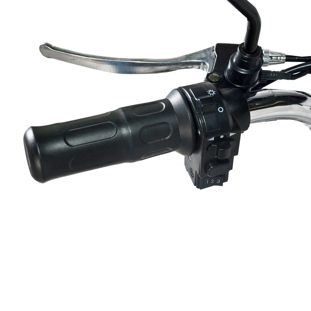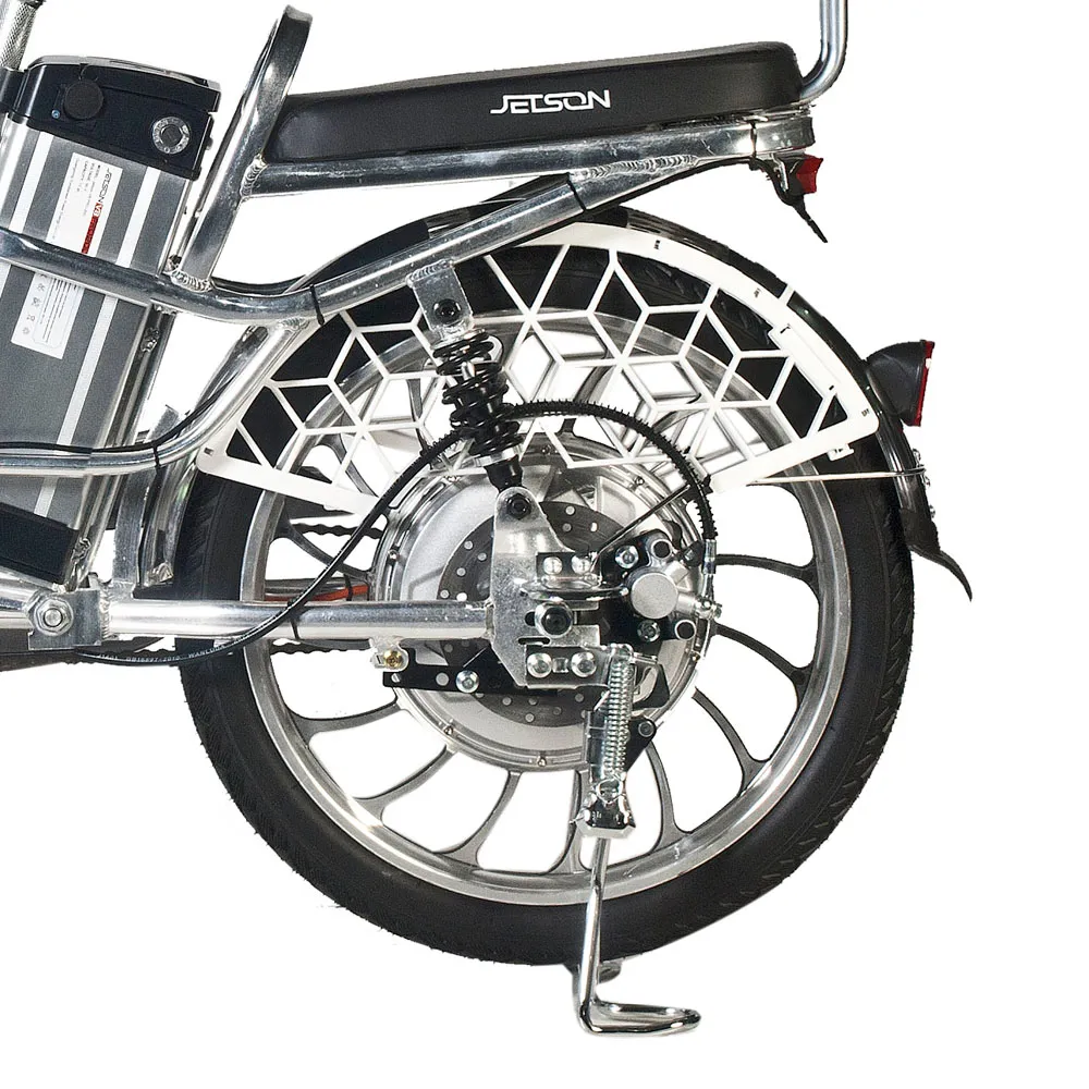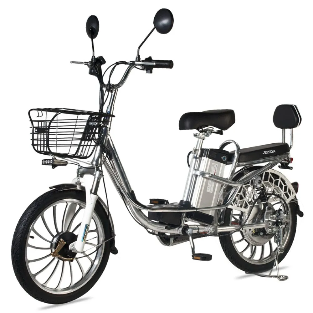 Электровелосипед Pro Max 20D от компании Jetson – прекрасный выбор для поездок по городу и вне его. Его лёгкая алюминиевая рама выдерживает до 200 килограмм и имеет скромные габариты, что придаёт велосипеду манёвренности. Помимо этого, велосипед имеет хорошую управляемость, обеспеченную правильной посадкой, удобным рулём и 20-дюймовыми колёсами, позволяющими преодолевать любые неровности на городских и загородных дорогах. На руле велосипеда расположены ручки тормоза, ручка газа, бортовой компьютер и зеркала заднего вида. Амортизационная вилка, как и задние пружинные амортизаторы, с лёгкостью сглаживают все неровности дорожного покрытия. Сидение велосипеда Pro Max 20D – большое и мягкое. Помимо этого есть возможность установки второго сидения для пассажира. Отсек аккумулятора располагается под сидением, что делает аккумулятор легкосъёмным. Ёмкость батареи – 13000 мАч, что даёт проезжать на велосипеде до 55 километров на одном заряде. Также всегда можно докупить батарею на 20 Ач (да, она тоже помещается в отсек АКБ), тем самым увеличив дальность пробега в разы! Электродвигатель, установленный на этой модели, позволяет разогнаться до 50 км/ч. Для безопасной остановки таких мощностей Jetson Pro Max 20D имеет современные гидравлические тормоза. За заметность велосипеда ночью отвечают стоп сигнал и передняя фара, помогающая лучше видеть дорогу.