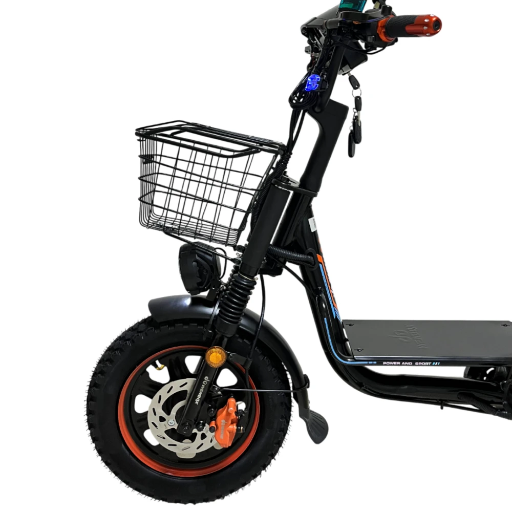 Аккумулятор ёмкостью 30 Ah и напряжением 60 V обеспечивает пробег до 80 км, что достаточно для длительных поездок и ежедневных маршрутов. Быстросъемный аккумулятор облегчает зарядку и хранение.