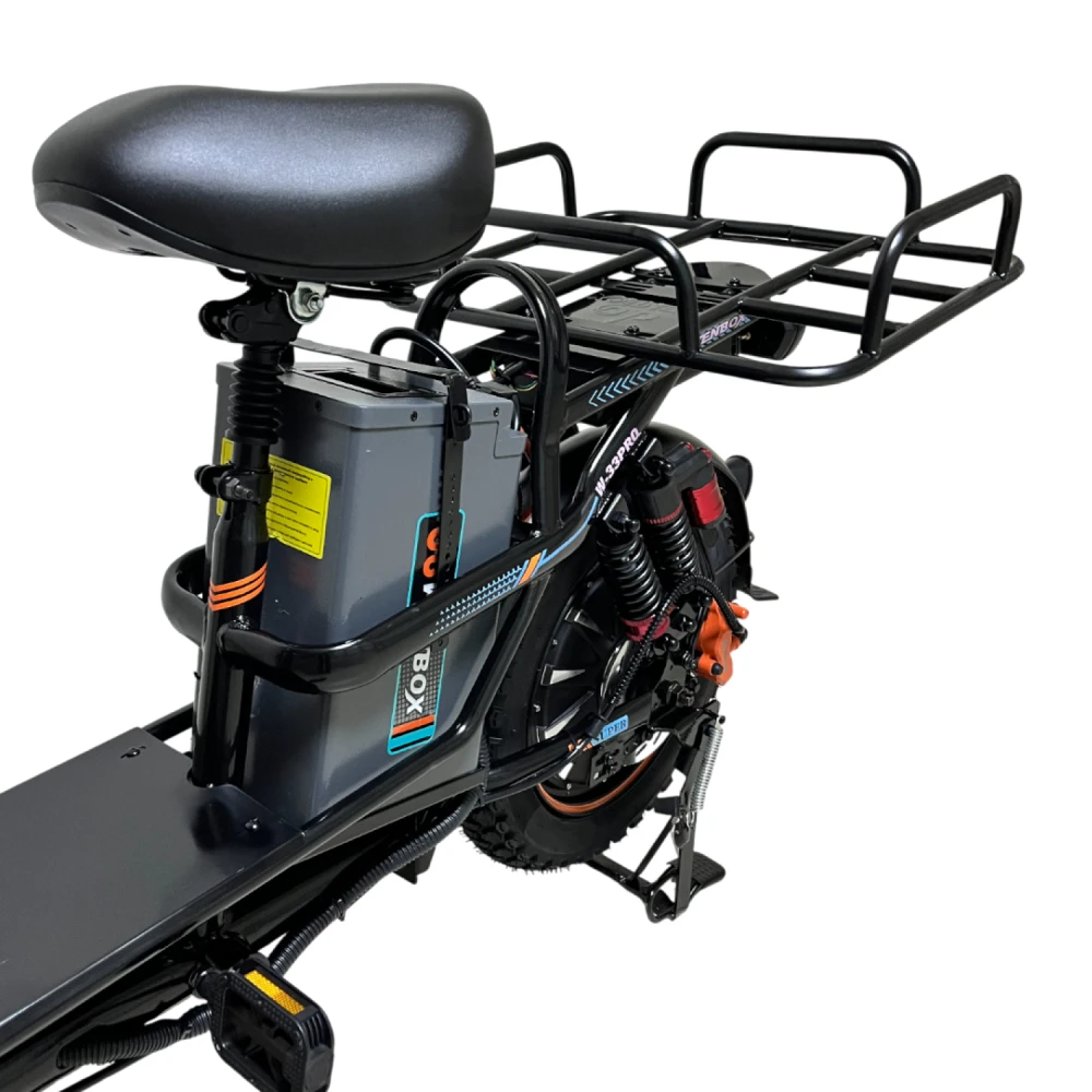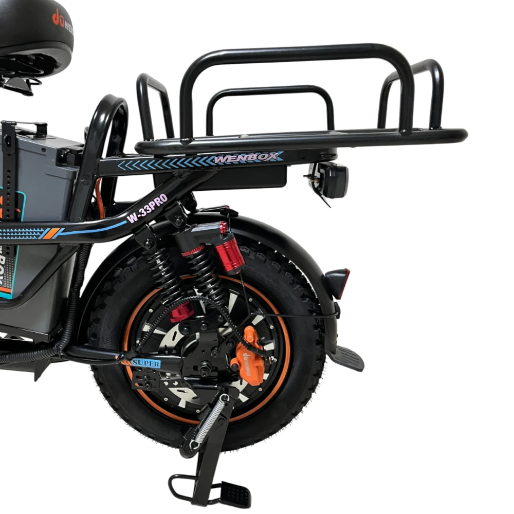 WENBOX W33 PRO — это мощный и комфортный электровелосипед с продуманным функционалом и качественной комплектацией, подходящий для ежедневных поездок и активного образа жизни. Высокая грузоподъемность до 200 кг, надежность и широкий набор функций делают его одним из достойных представителей сегмента электровелосипедов с задним приводом и усиленной подвеской.