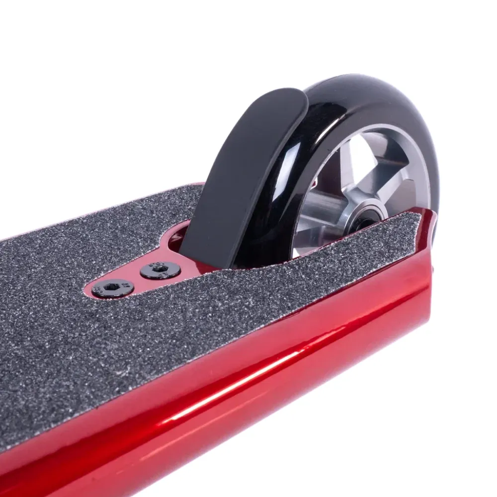 Дека самоката изготовлена из прочного алюминия ALU 6061, что обеспечивает надежность и долговечность конструкции. Красный цвет придает самокату стильный и энергичный вид. Колеса изготовлены из полиуретана, обеспечивая отличную амортизацию и плавную езду.