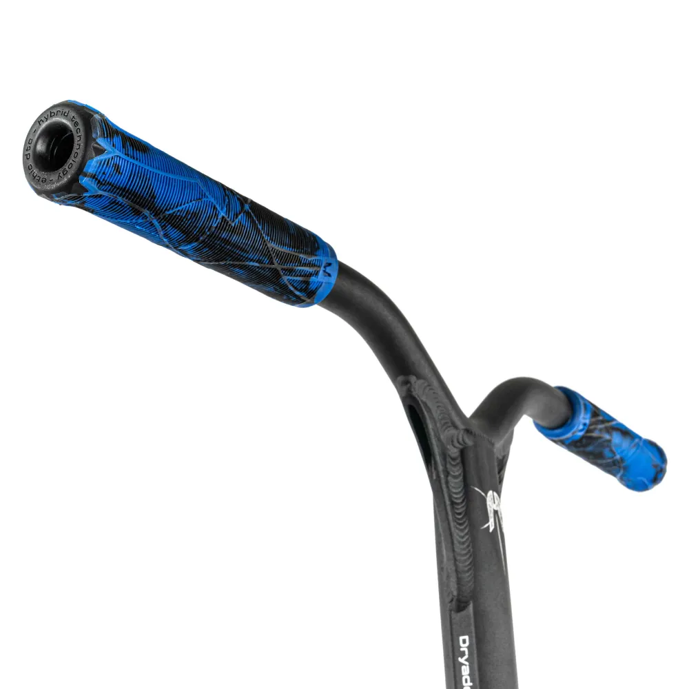 Высота руля 620 мм и его Y-образная форма идеально подходят для райдеров ростом от 140 до 165 см, обеспечивая оптимальный контроль. Алюминиевая дека шириной 120 мм и длиной 500 мм предлагает надежность и устойчивость, которые вы оцените во время выполнения сложных трюков. Синий цвет на грипсах, дисках и хомуте придает самокату яркий и запоминающийся вид, делая его неотъемлемой частью вашего уникального стиля.