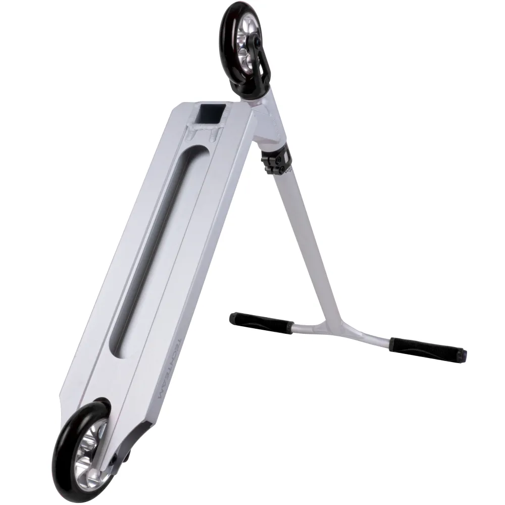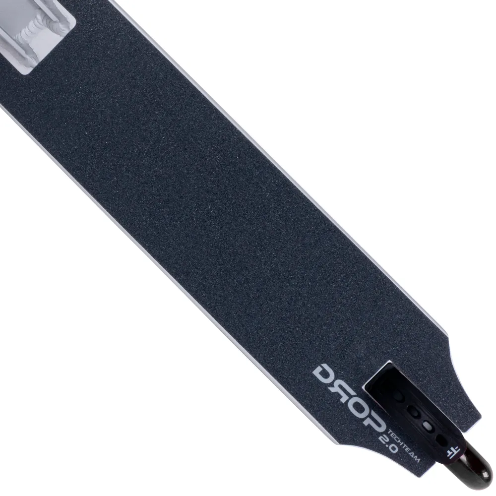 Дека самоката Tech Team Drop 2.0 выполнена из прочного алюминия, предоставляя надежную платформу для райдера. Легкая конструкция деки обеспечивает комфорт и маневренность во время катания, что особенно важно для выполнения трюков.