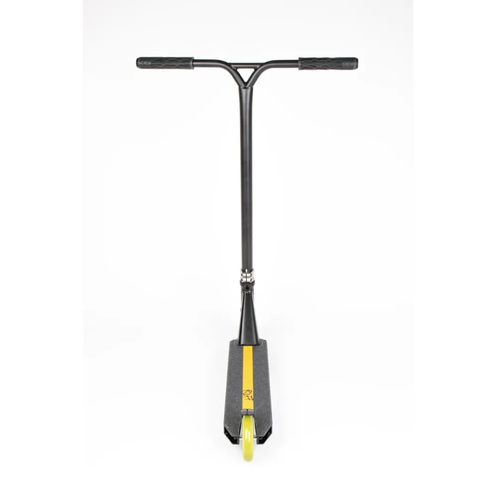 САМОКАТ RUFF – продвинутая модель самоката в желто-черных цветовых оттенках. Нравится райдерам СНГ и отечественным ездокам техническими характеристиками, дизайном и простотой управления. Райдеры профи связывают технику с ершом, колючей опасной рыбой, которую стоит обходить стороной. В действительности самокат не настолько опасен. При правильном управлении техника обещает максимум эмоциональных удовольствий.